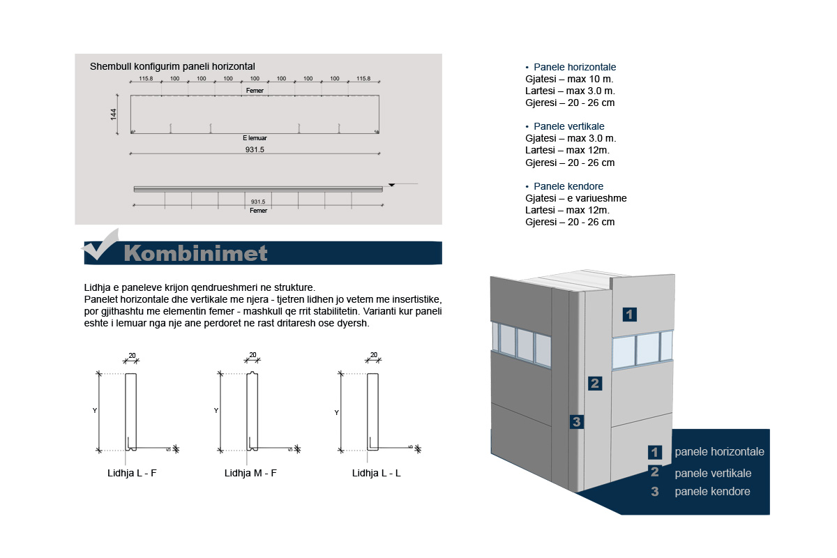 Veshja e godinave parafabrikat realizohet me parete te parafabrikuara te perbere nga beton I armuar dhe shtrese polistiroli izoluese.